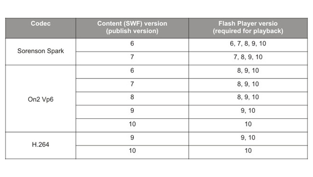 Before using videos in your Flash project, you would need to encode them in a format compatible with Adobe Flash (FLV or MPEG-4). To encode videos into FLV or MP4, the encoder software uses following codecs – H.264, On2 VP6, and Sorenson Spark.