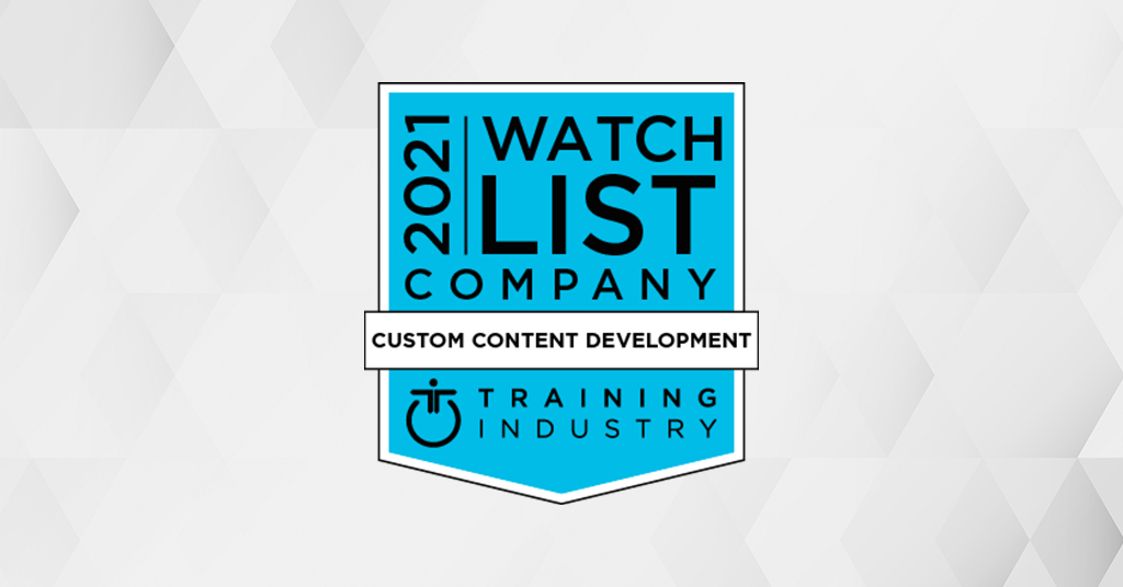 Multiple other pleasant recognitions came our way this year. We got featured in Training Industry’s 2021 Custom Content Development Companies Watch List. The selection was based on the following criteria:
