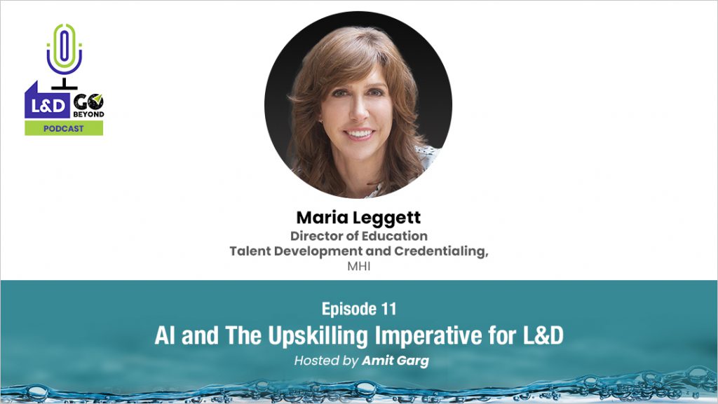 In this episode of the L&D Go Beyond podcast, Amit Garg interacts with Maria Leggett, Director of Education, Talent Development and Credentialing at MHI. Both of them hold a very interesting conversation on AI and The Upskilling Imperative for L&D. Maria talks about the changes and impact that AI is having on L&D, how it will be completely reinvented and developing skill taxonomy, amongst other things.