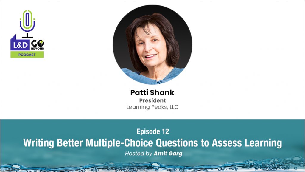 In this episode of the L&D Go Beyond podcast, Amit Garg interacts with Patti Shank, President Learning Peaks LLC. They talk about a very interesting topic – Writing Better Multiple-Choice Questions (MCQs) to Assess Learning.