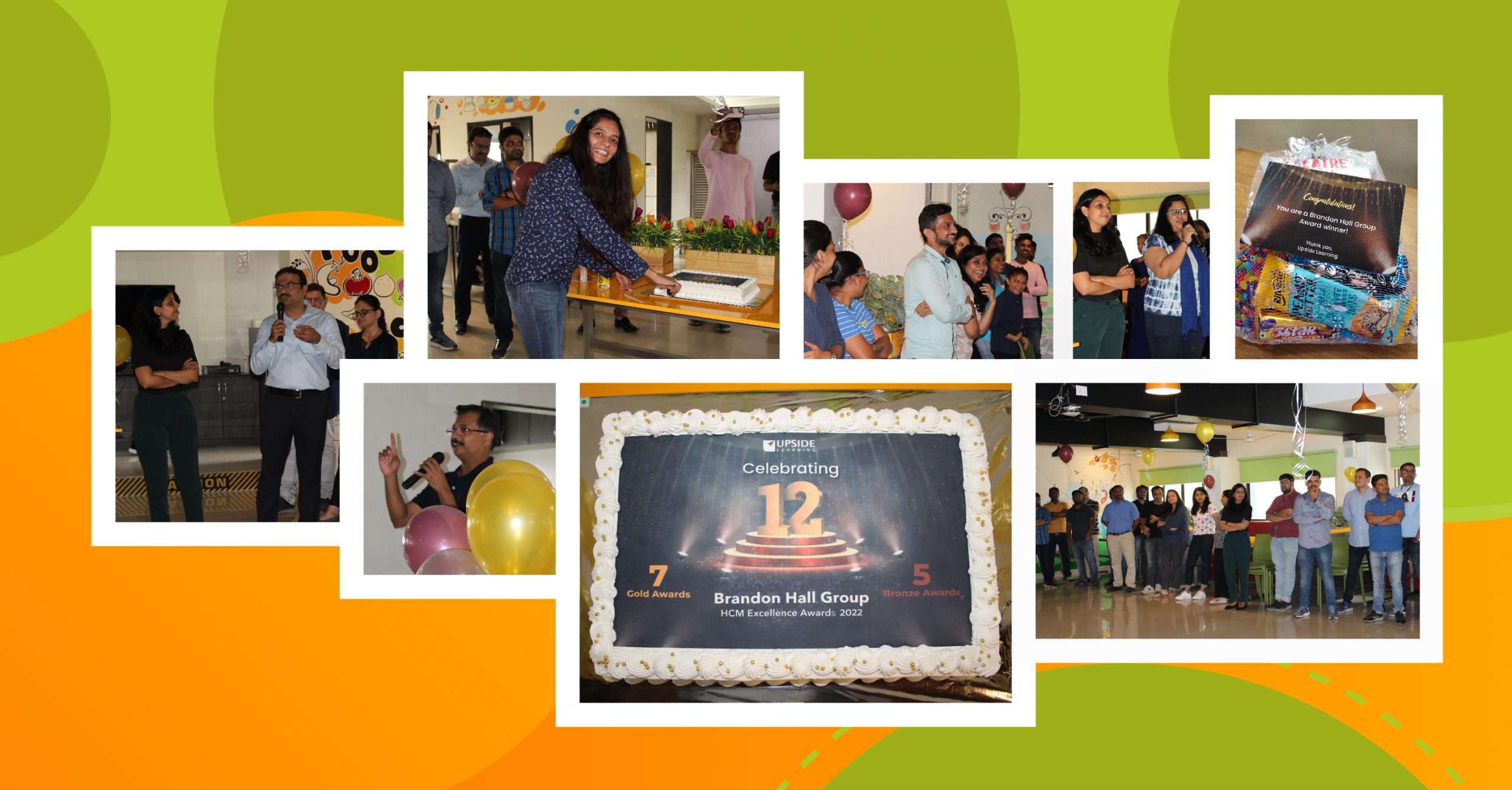 Working from the office once a week also provides an opportunity to celebrate occasions, events, festivals, or any major milestones achieved by the company. As the first in-person celebration of Upside’s achievements for the year, we celebrated our Brandon Hall Group Award wins for 2022! Upside Learning bagged 12 awards this year, 7 of which were Gold and the remaining, Bronze. No celebration is complete without cutting a cake. Can you picture a group of about 60 people cutting a huge cake? That’s Upside for you! The celebrations also included goodie bags being presented to every Upsider who was in the office that day, irrespective of whether they were a part of the winning teams or not. That’s because we call ourselves a family for a reason – every single Upsider is equally important. The highlight of the day was the little postcard inside the goodie bag that read – “You are a Brandon Hall Group Award winner!” The card added a personalized touch and had everyone smiling ear to ear. Appreciation is an important part of our culture, and we practice it through the smallest of things.
