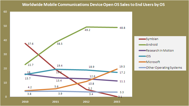 Here’s a forecast from Gartner about how the smart phone market could look like in 2015.